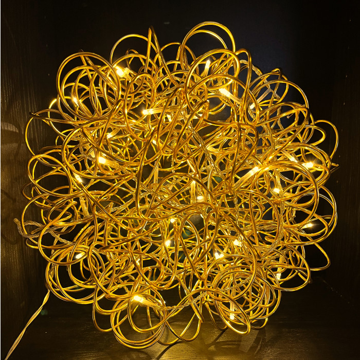 Wil je jouw kerstversiering echt laten stralen? Dan is de 3D Kerstbal "Galax Cluster" in een stijlvolle koperkleur dé blikvanger die je zoekt! Deze indrukwekkende kerstbal van ø30 cm, gemaakt van aluminium in een prachtige koperkleur is voorzien van 50 warmwitte LEDs die je ruimte transformeren in een fonkelend sterrenstelsel.