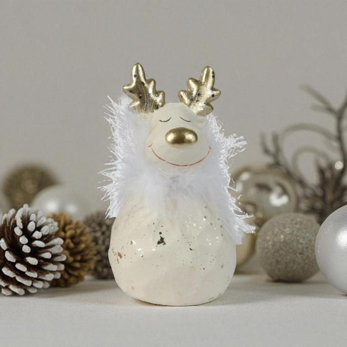 Terracotta Rendier – Wit met gouden details - 16,1 cm