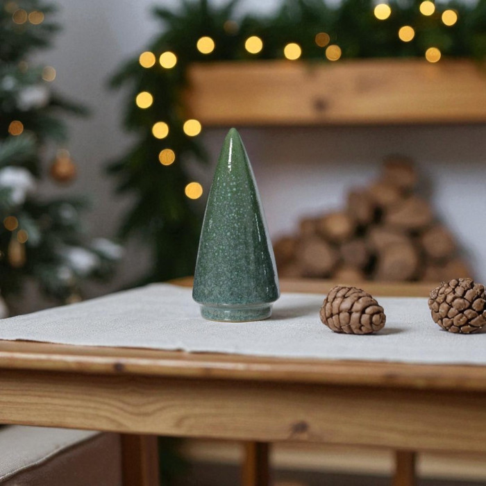 Deze decoratieve kerstboom is gemaakt van porselein en is ontworpen met één enkele laag, waardoor hij een eenvoudig, maar toch indrukwekkend accent vormt op elke tafel, schouw of vensterbank. Combineer hem met andere kerstdecoraties voor een unieke en sfeervolle look die past bij elke feestelijke setting.