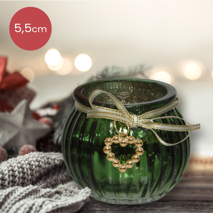Donker groene glazen waxinelichthouder met hartje - Ø6,5 x 5,5 cm
