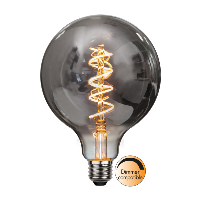 Geschikt voor het gebruiken als decoratieverlichting. Deze sierlijke dimbare LED G125 Globelamp (Bol XXL) valt onder de warm soft glow lampen en de kleur van het glas is rookglas. De lichtkleur van de LED lamp is Super Warm Wit (2100K) en hierdoor brengt hij veel sfeer in jouw ruimte.