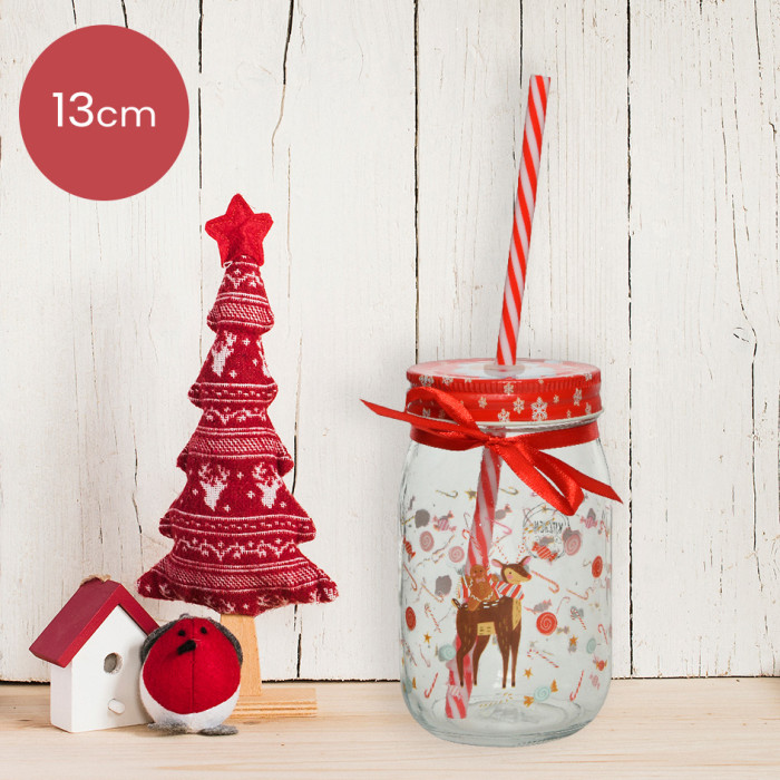 Deze glazen limonadebeker met rietje is perfect voor het serveren van koude drankjes tijdens de feestdagen. Het is ook een geweldig cadeau-idee voor vrienden en familie die dol zijn op kerstdecoraties en feestelijke drankjes.