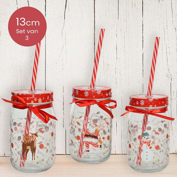 Deze glazen limonadebekers met rietje zijn perfect voor het serveren van koude drankjes tijdens de feestdagen. Het is ook een geweldig cadeau-idee voor vrienden en familie die dol zijn op kerstdecoraties en feestelijke drankjes.