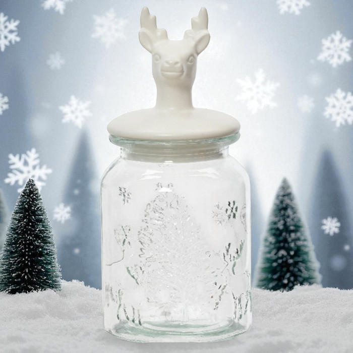 - Decoratieve glazen pot met wit rendierdeksel