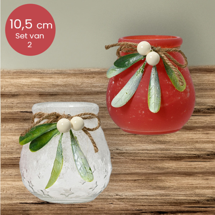 Glazen waxinelichthouders met blaadjes en bessen - Duo pack - Ø10,2 x 10,5 cm