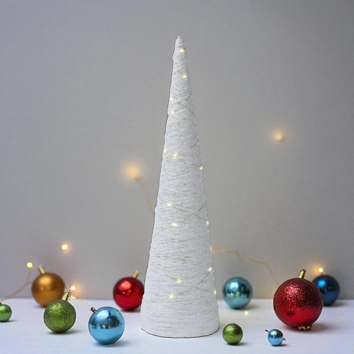 Breng je interieur moeiteloos in feeststemming met deze kerstboom kegel met verlichting in wit. Met een hoogte van 58 cm en een elegante, slanke vorm is deze kegelvormige boom een stijlvolle toevoeging aan je kerstdecoratie.