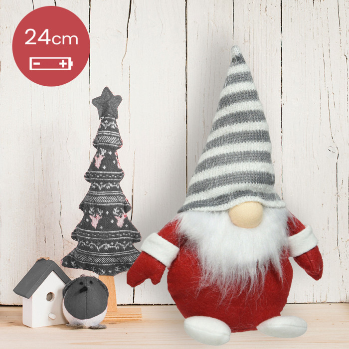 Gnoom met grijs gestreepte muts en LED verlichting op batterijen - 24CM