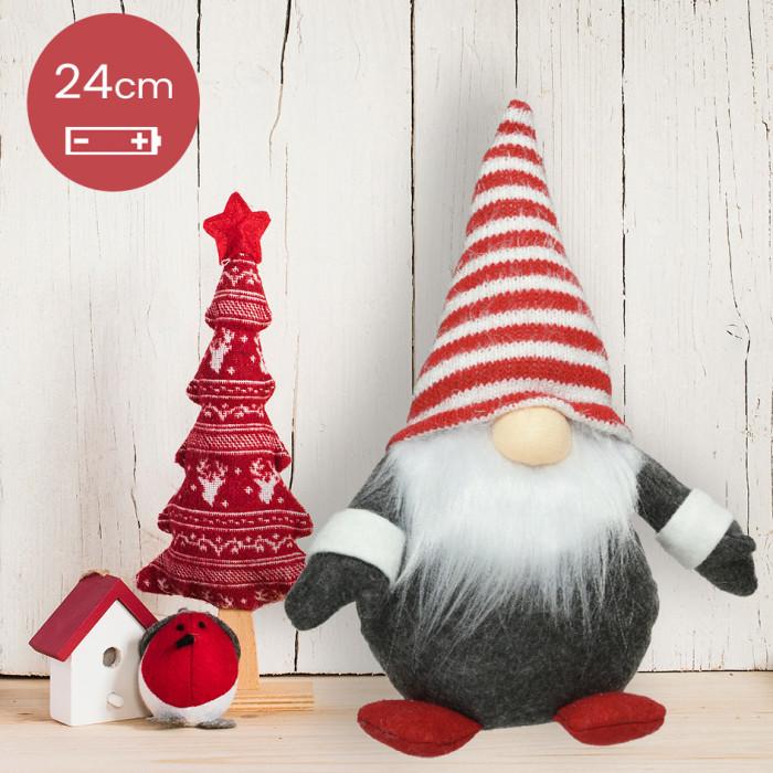 Gnoom met rood gestreepte muts en LED verlichting op batterijen - 24 cm