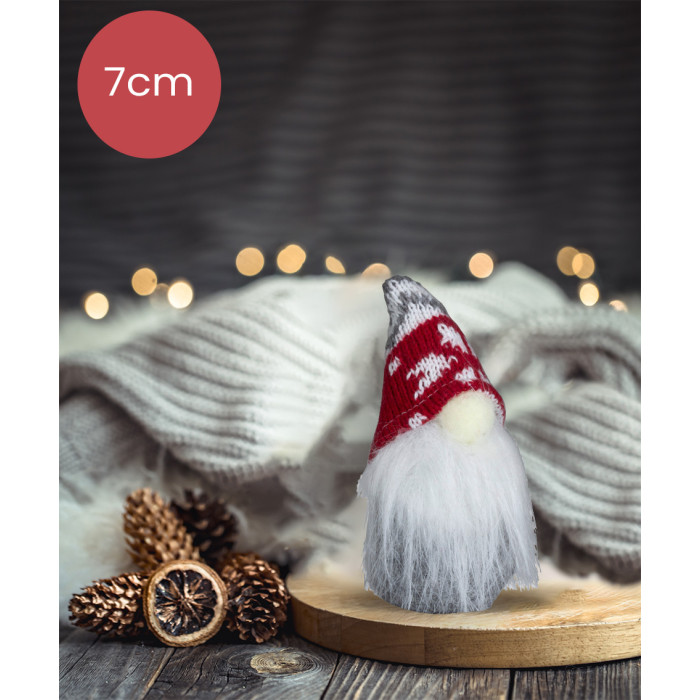 Deze schattige mini Gnoom met een donkerrood/witte muts voegt een vleugje charme toe aan je decoratie. Ondanks zijn kleine formaat brengt hij een speelse sfeer met zich mee.