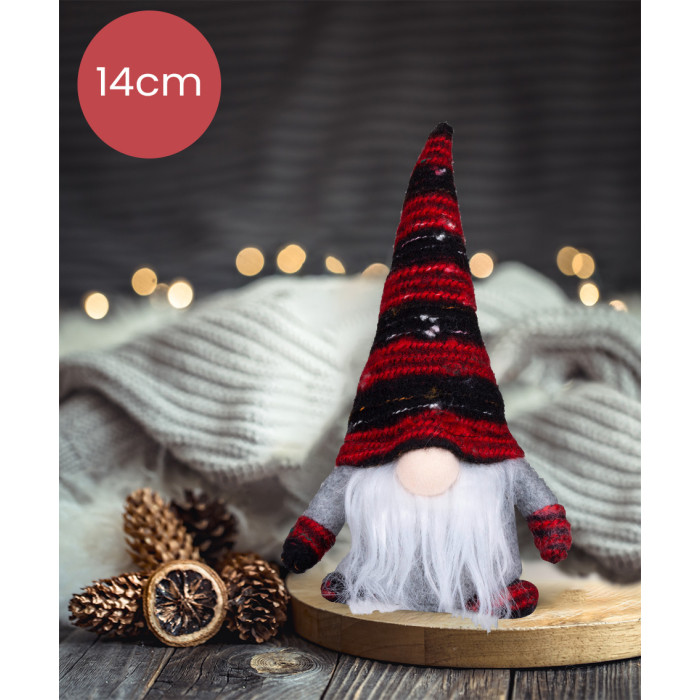 Handgemaakte Gnoom met rood/zwart gestreepte puntmuts - 14(20)cm