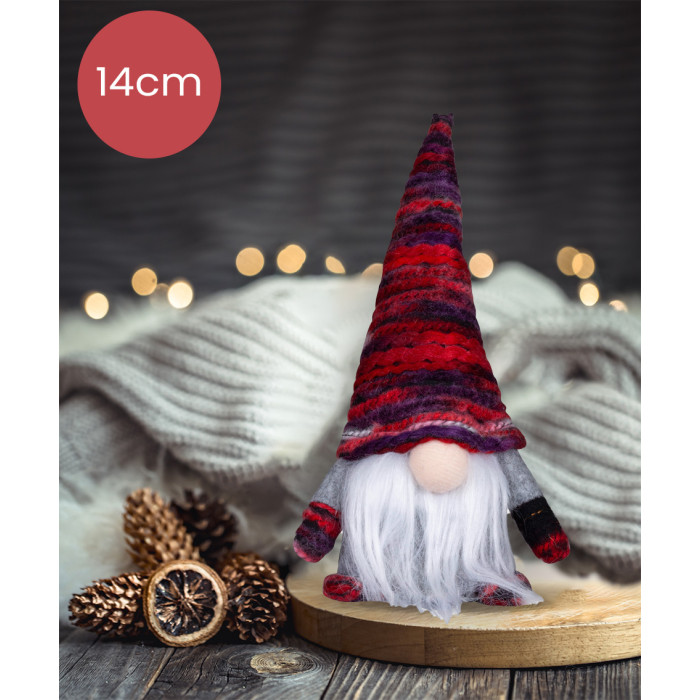 Handgemaakte Gnoom met rood/paars/roze kleurige puntmuts - 14(20)cm