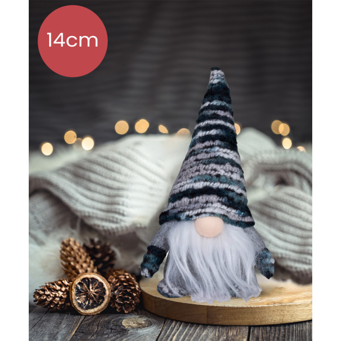 Handgemaakte Gnoom met wit/zwart/grijs kleurige puntmuts - 14(20)cm