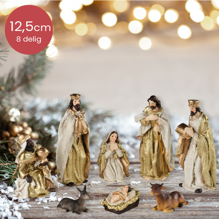 Gouden kerststal figuren - 8 delig - 12,5cm Hoog