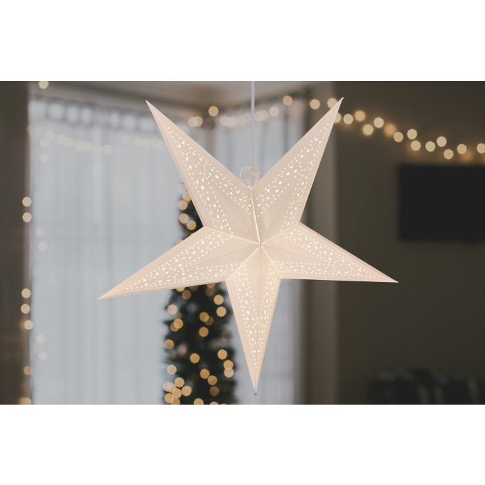 Breng de hemel naar binnen met de prachtige Hangende Kerstster "Heaven"! Deze 55x55 cm grote kerstster is gemaakt van papier en zorgt voor een warme, feestelijke sfeer. Perfect om voor een raam, boven de tafel of aan het plafond te hangen. Het is niet alleen een blikvanger, maar ook een sfeermaker die jouw huis omtovert in een waar kerstparadijs.