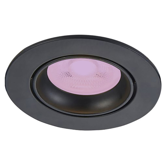 Deze slimme inbouwspot is rond en afgewerkt in de kleur zwart.