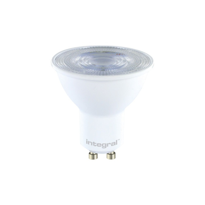 De Integral GU10 LED spot is een energiezuinige en krachtige vervanger voor traditionele halogeenlampen. Met een verbruik van slechts 3.6 Watt bespaar je aanzienlijk op energie, terwijl de lamp dezelfde helderheid biedt als een ouderwetse 50W halogeenspot. Het koel witte licht (4000K) zorgt voor een frisse en heldere verlichting, ideaal voor keukens, werkruimtes, badkamers en kantoren.
