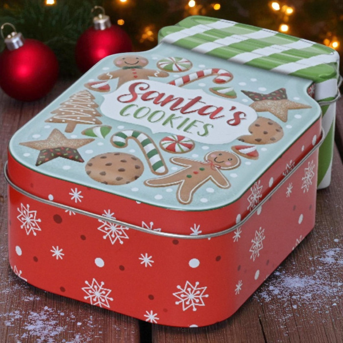 - Met de tekst 'Santa’s Cookies' op het deksel