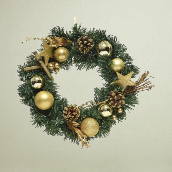 Belangrijkste eigenschappen van Decoratieve Kerstkrans ø30 cm Groen/Goud:
