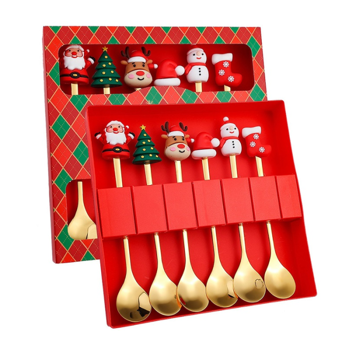 - Set van 6 goudkleurige kerstlepels
