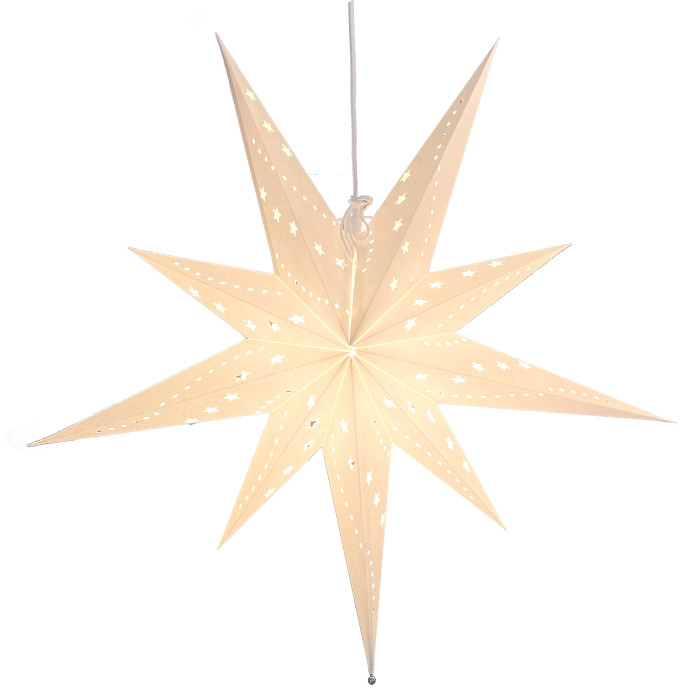 Laat je huis shinen met de Kerstster "Heaven" in stijlvol wit! Deze papieren kerstster van 58x55 cm voegt een vleugje magie toe aan je kerstdecoratie. Perfect voor binnen gebruik, hangt hij prachtig voor een raam, aan de muur, of als middelpunt van je feestversiering.