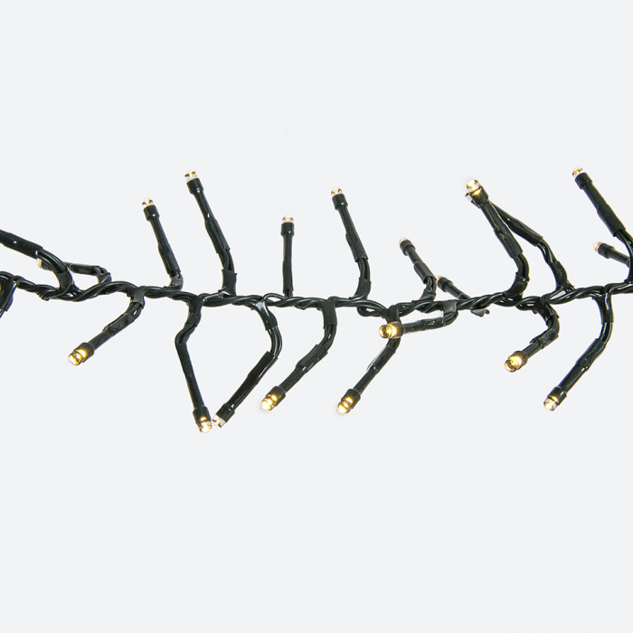 De LED cluster string heeft in totaal 250 LED lampjes en geeft een warme witte lichtkleur.
