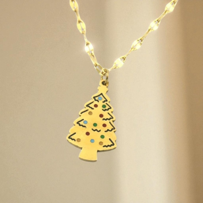 Geef je outfit een sprankje kerstmagie met deze gouden ketting! De goudkleurige kerstboom is versierd met kleurrijke accenten die lijken op kerstlampjes. Perfect om de feestdagen in stijl tegemoet te gaan. De goudkleurige ketting is gemaakt van stainless steel. Hij is volledig vrij van nikkel en cadmium, ideaal voor de gevoelige huid.