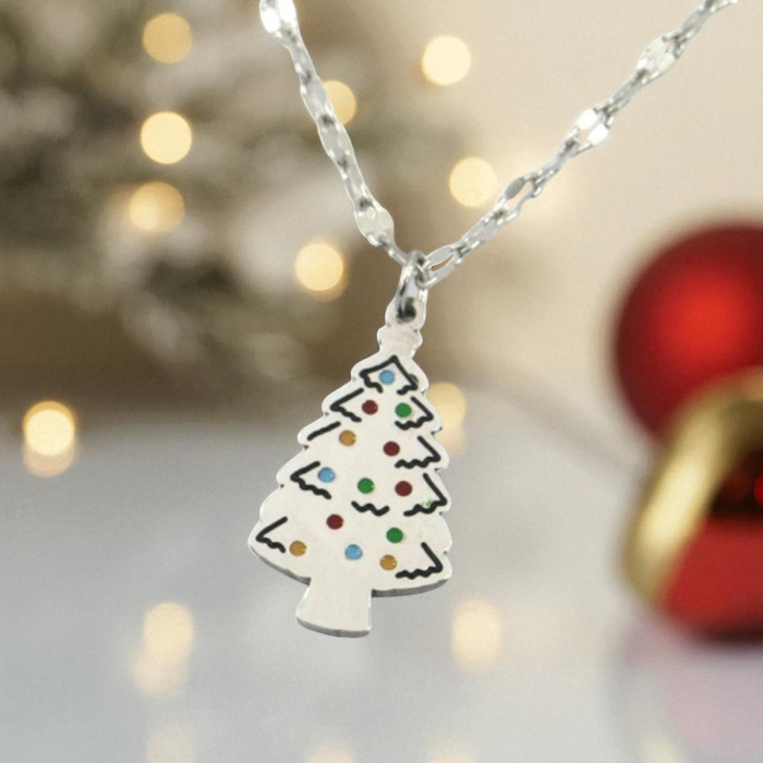 Belangrijkste eigenschappen van Zilveren ketting met kerstboom en kleurtjes: