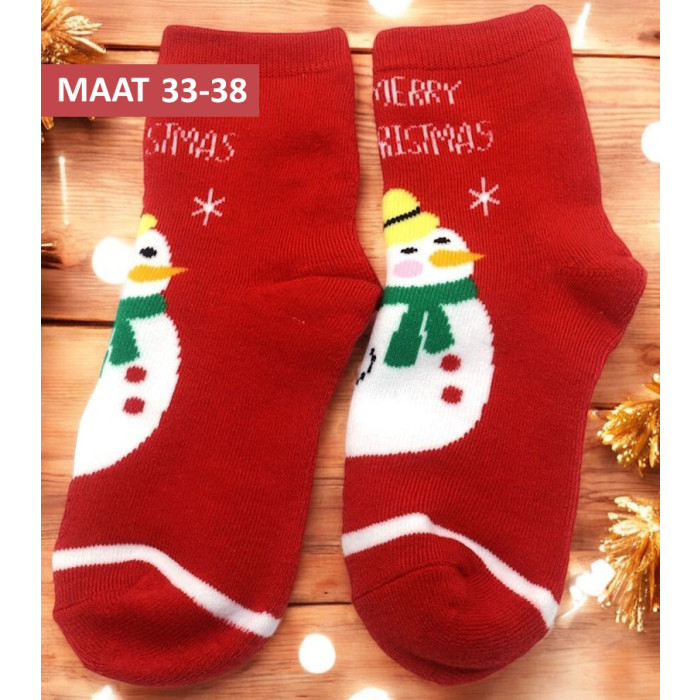 Rode Kerstsokken met sneeuwpop - maat 33-38