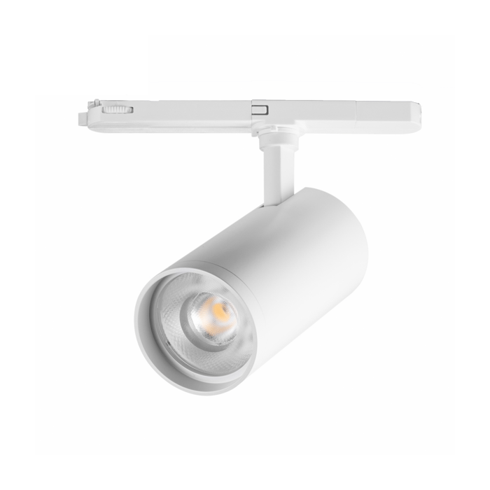Dit LED armatuur is geschikt voor gebruik op een 3-fase railsysteem. De armatuur heeft een vermogen van 30W en een kleurtemperatuur van 3000K, wat zorgt voor warm wit licht. Dankzij de 3-fase aansluiting is het mogelijk om de armatuur te dimmen en te schakelen tussen verschillende lichtgroepen. . De behuizing is gemaakt van aluminium en heeft een witte kleur.