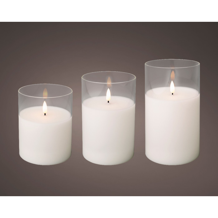 LED kaars in glas wit- set van 3