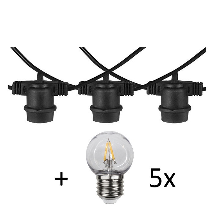 LED Prikkabelset 5M - 5 E27 lampen 1.4W 2700K