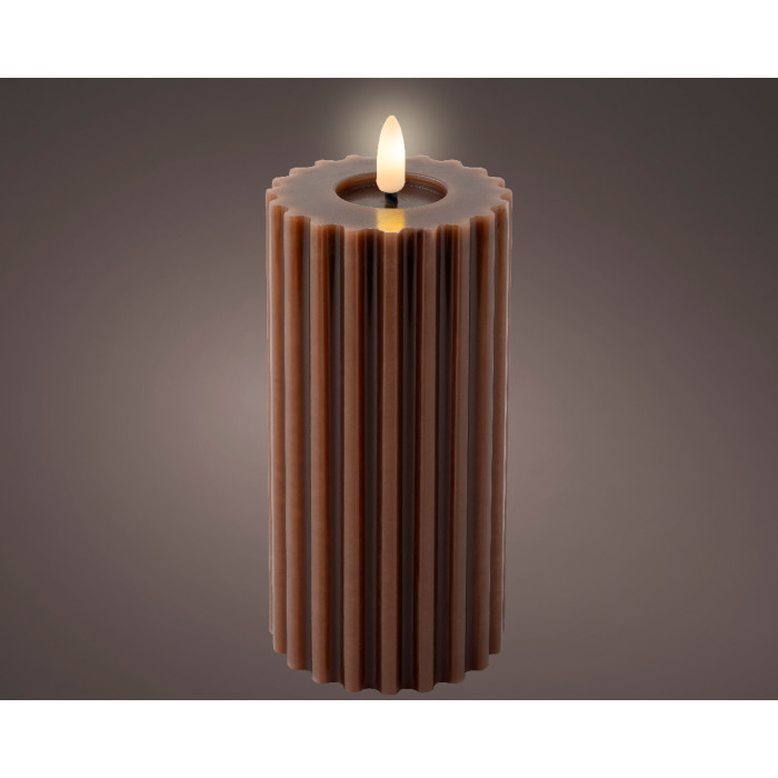 LED ribbel kaars donkerbruin met vlam-effect ø7,5 x17,3 cm