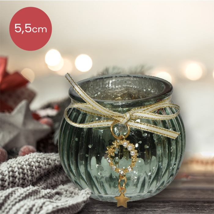 Licht groene glazen waxinelichthouder met ster - Ø6,5 x 5,5 cm