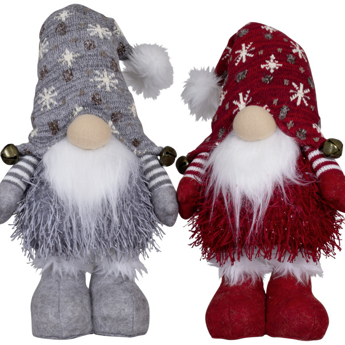 Handgemaakt rood/grijs Gnomen-duo met LED verlichting - 34(56)cm