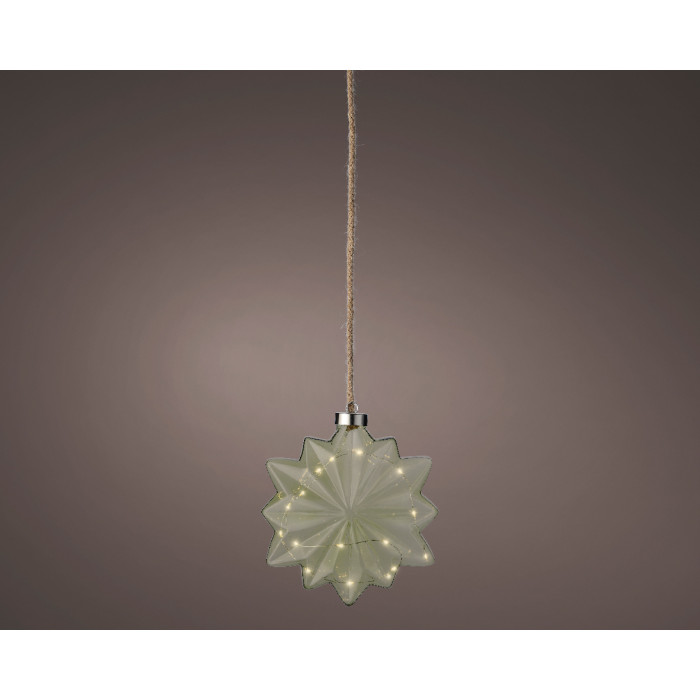 Breng een vleugje natuur en warmte in je interieur met de Micro LED Bloem Lamp van Lumineo. Deze prachtige lamp, gemaakt van glas in een subtiele groene kleur, is vormgegeven als een elegante bloem aan een touw. De 15 warm witte LED-lampjes zorgen voor een sfeervolle en zachte verlichting, perfect voor een rustgevende en gezellige ambiance in huis.