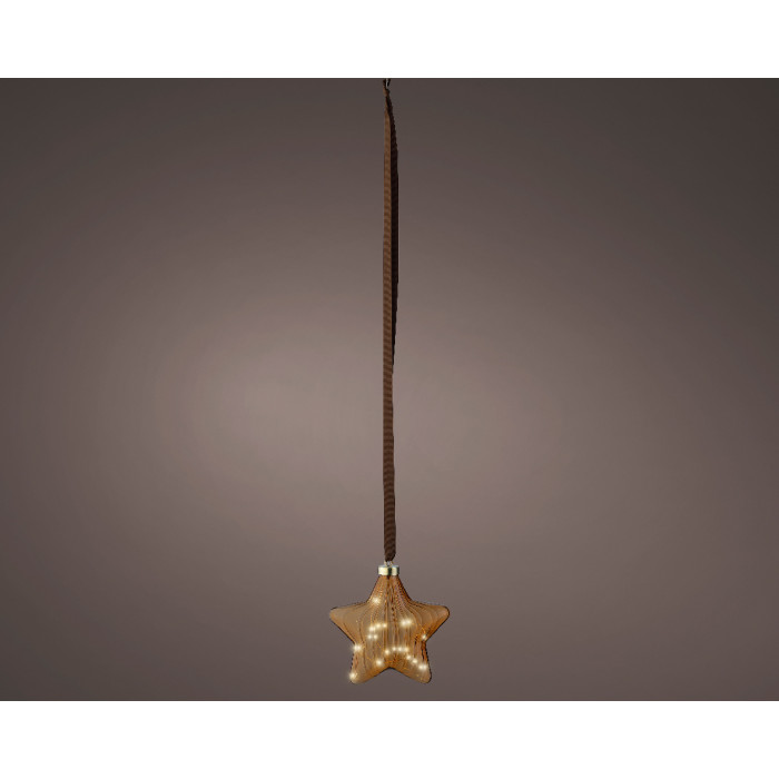 Laat je huis schitteren tijdens de feestdagen met de Lumineo Micro LED Ster Lamp. Deze stijlvolle lamp, gemaakt van glas in een warme bruine kleur, heeft de vorm van een sfeervolle ster aan een touw. De 15 warm witte LED-lampjes verspreiden een zachte en warme gloed, ideaal om je huis in een gezellige kerstsfeer te brengen.