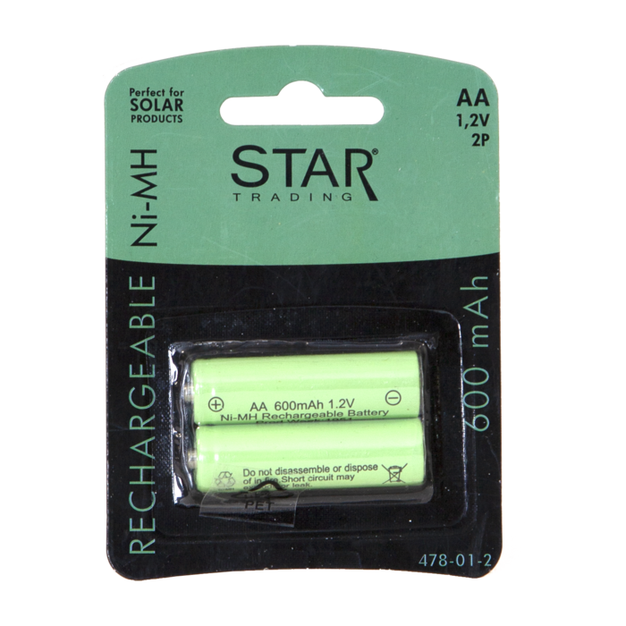 Als u op zoek bent naar een betrouwbare en krachtige oplaadbare batterij voor uw apparaten of Solar, dan is de oplaadbare batterij AA 1,2V 600mAh Ni-MH een uitstekende keuze. Geleverd in verpakking met 2 batterijen.