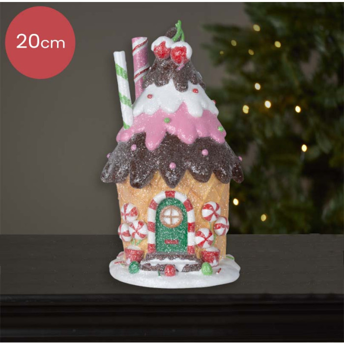 Peperkoekhuisje met sneeuw in de vorm van een ijsco - 20cm