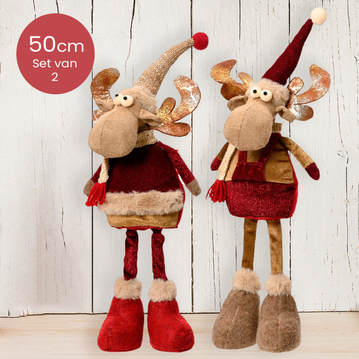 Polyester rendieren bruin met muts - Duo pack - 50cm