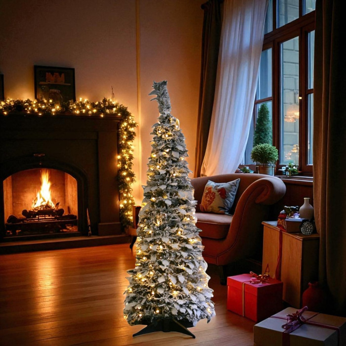 Deze pop-up kerstboom is er voor iedereen die het hele jaar denkt "Waarom duurt het altijd zo lang om die kerstboom op te zetten?" Met een snelle klik en een glijbeweging staat deze kerstboom met zijn besneeuwde takken binnen één minuut stralend in je woonkamer! Met zijn hoogte van 120 cm en diameter van 40 cm biedt hij de perfecte compacte kerstsfeer.