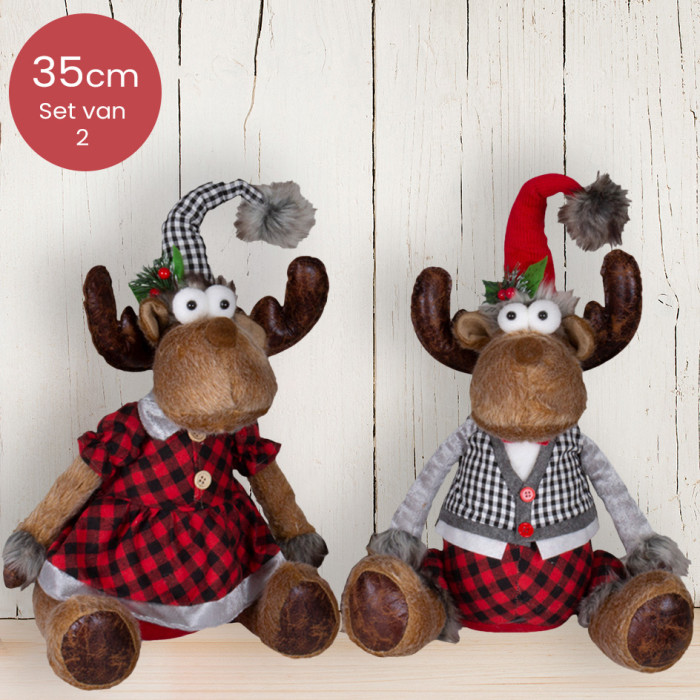 Handgemaakt Rendieren-duo met geblokte kleding - 35(48)cm