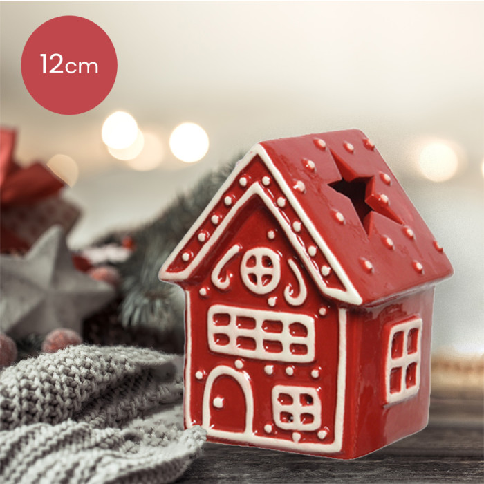 - Rode waxinelichthouder in de vorm van een huisje