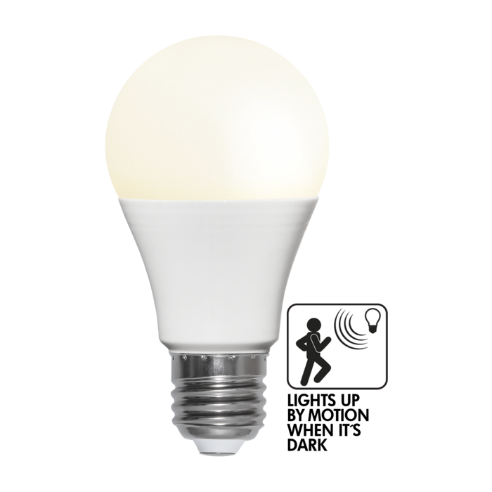 Dankzij de sensor detecteert de lamp beweging tot een afstand van 4 tot 6 meter. Na activatie blijft de lamp ongeveer 60 seconden branden en schakelt daarna automatisch weer uit. De extra warm witte lichtkleur (2700K) zorgt voor een aangename en comfortabele sfeer, terwijl de opaal afwerking zorgt voor een gelijkmatige lichtverdeling zonder verblinding.