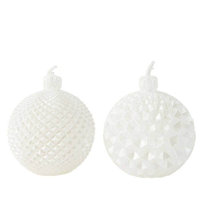 Set van 2 kerstbal kaarsen - winterwit - ø6 x 6,5 cm