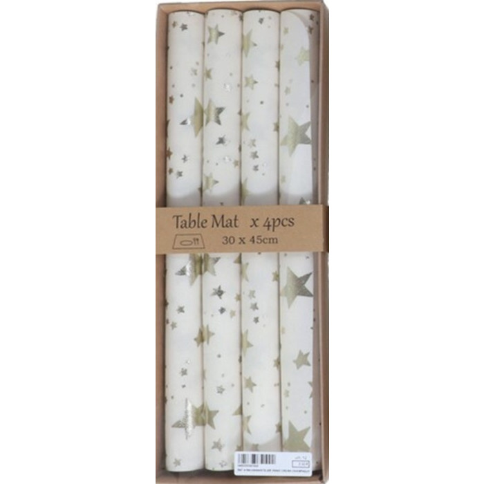 - Set van 4 placemats met zilveren sterrenmotief