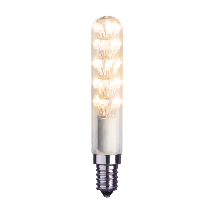Geschikt voor het gebruiken als decoratieverlichting. Deze LED staaflamp (T20) heeft een E14 fitting en als de LED staaflamp brandt dan geeft hij Super Warm Wit licht (2100K). De staaflamp verbruikt maar 1.5W aan stroom en is hiermee vergelijkbaar met een 18W halogeenlamp. De lichtopbrengst is 150 Lumen.