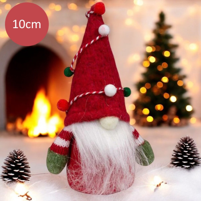 - Stoffen Gnoom met rode puntmuts en kerstballetjes