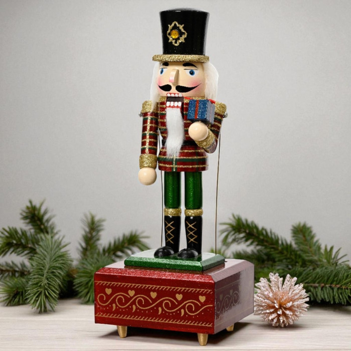 Traditionele Notenkraker met Muziekdoos. hoge hoed en cadeau - 30 cm hoog