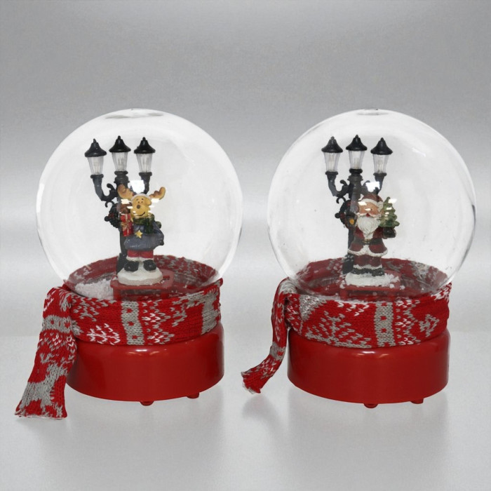 - Set van twee schudbollen met muziek, licht en sneeuw