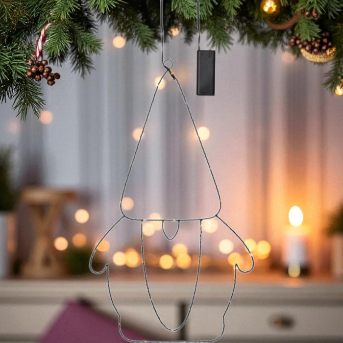 De kabouter bestaat uit een stevige zwarte frame met daarin 30 LED lampjes verwerkt. Als de LED lampjes branden geven ze warm wit licht.